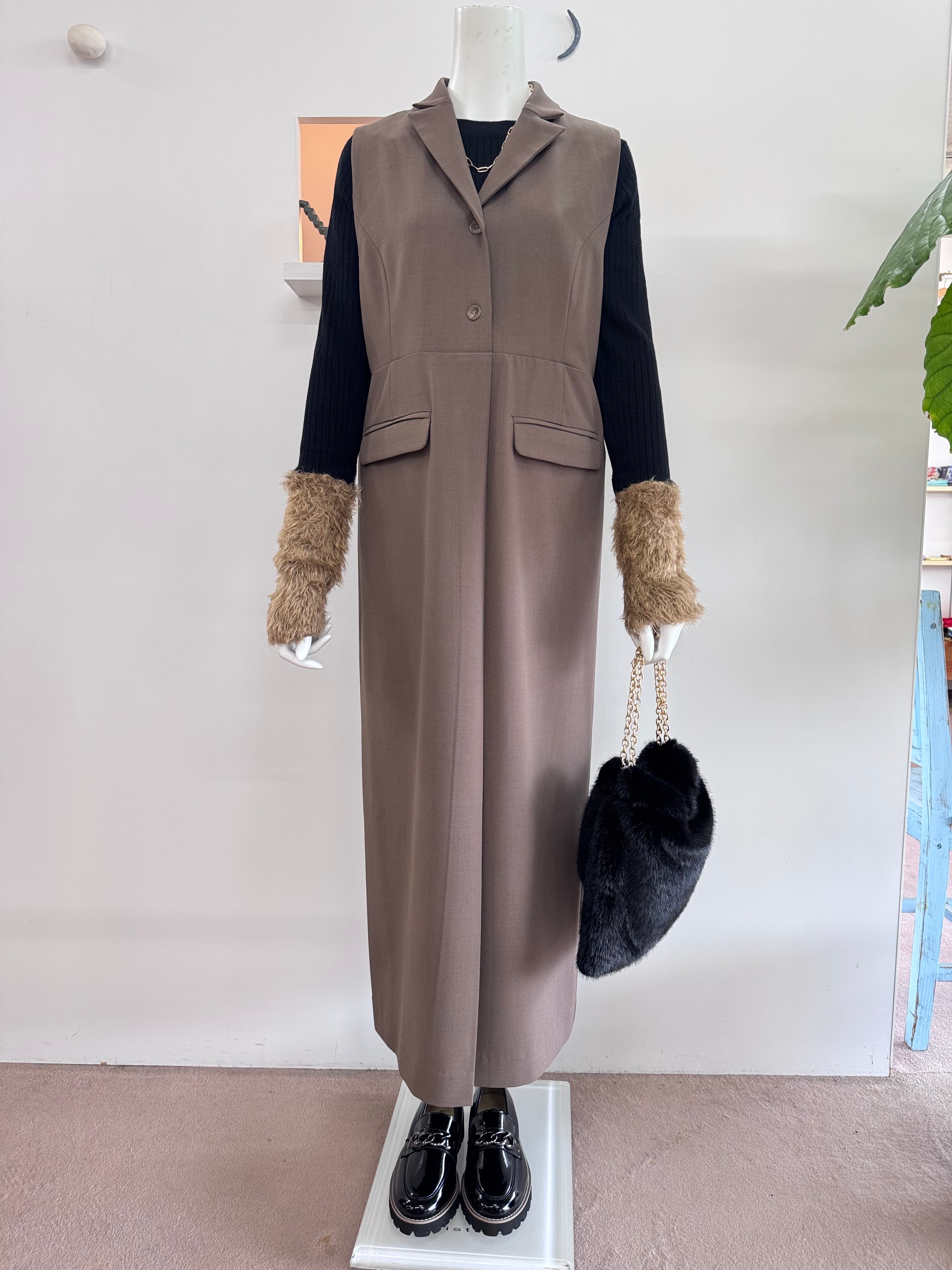 ノースリーブはもちろん、シアーのインナーやニットを入れていろいろなスタイリングを楽しめます。