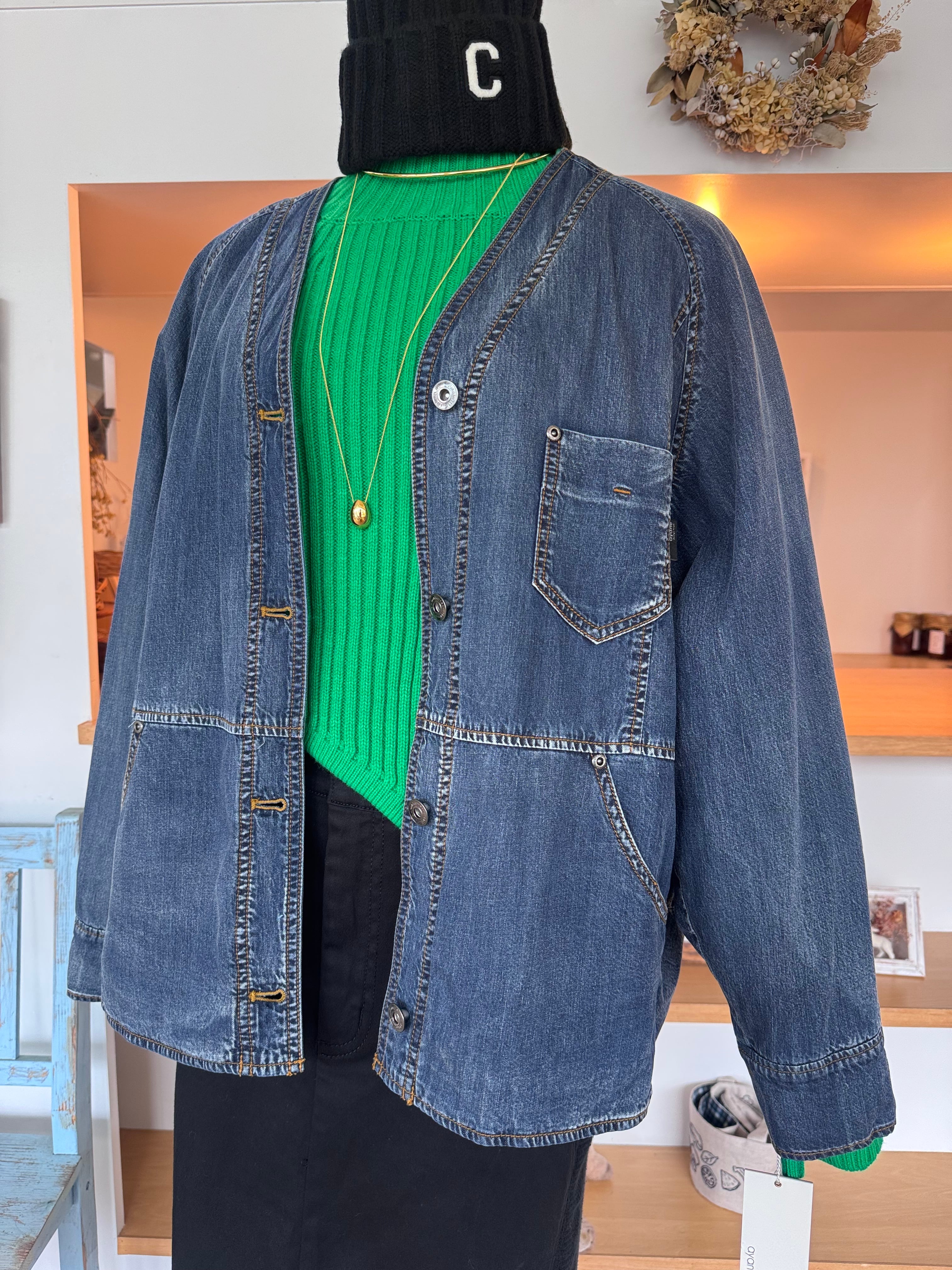 裏地が中綿キルト入りの軽くて暖かいデニムジャケット。