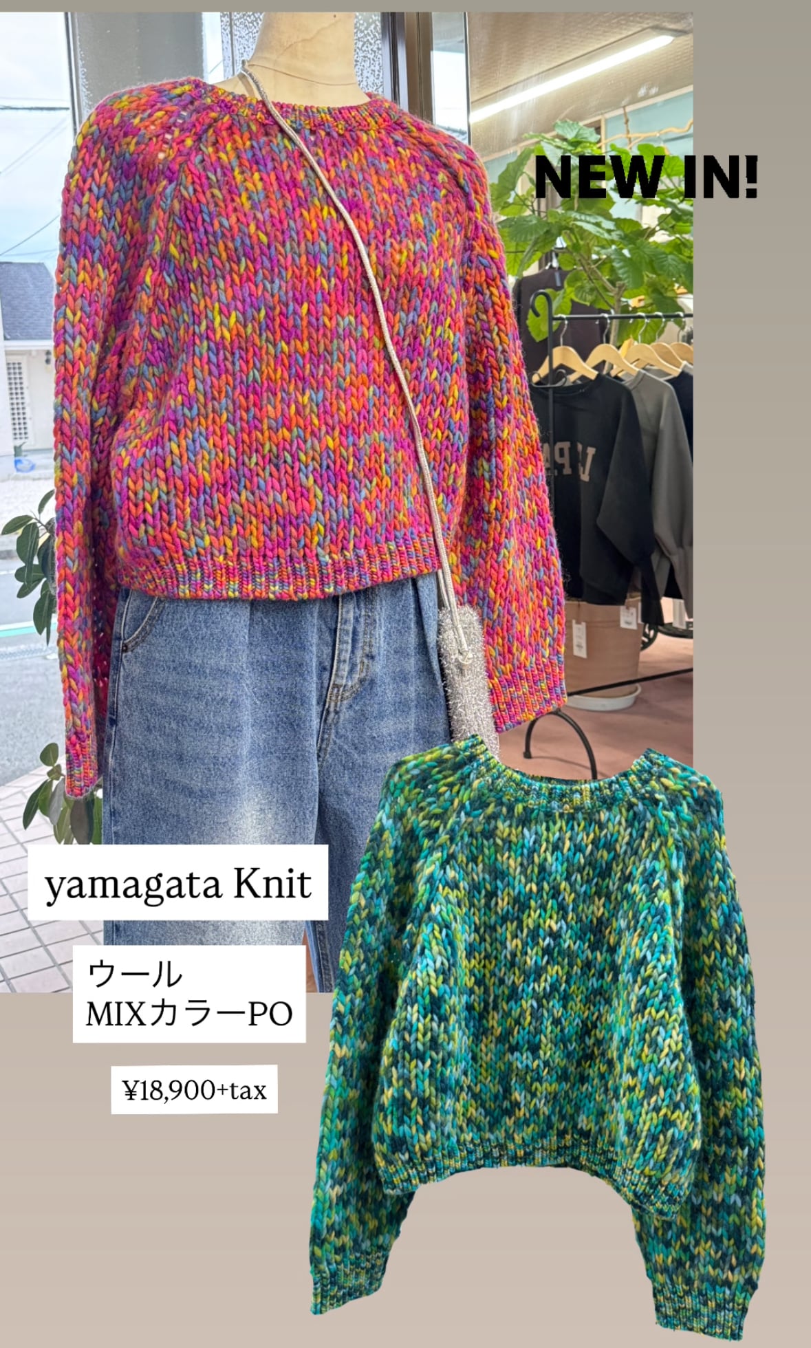 カラフルなmix糸を使った、ショート丈のニットです。