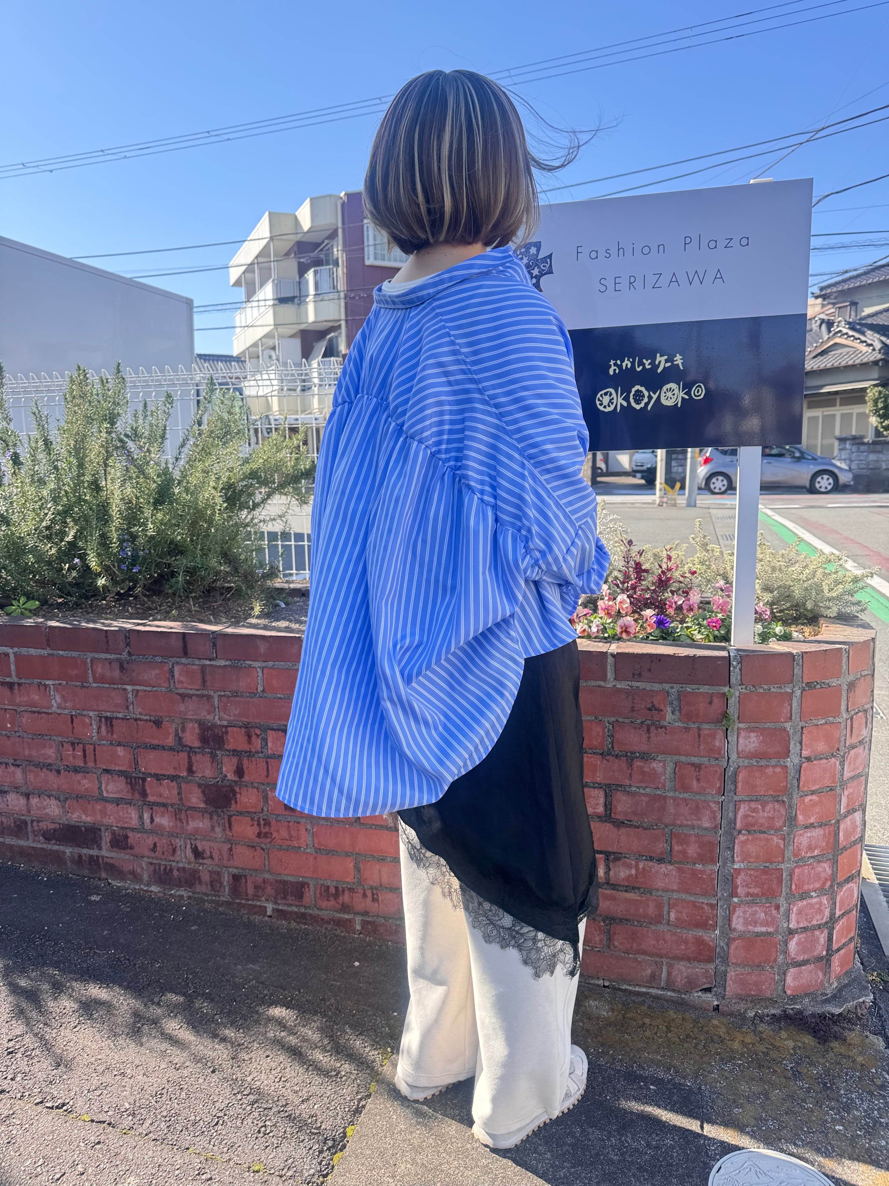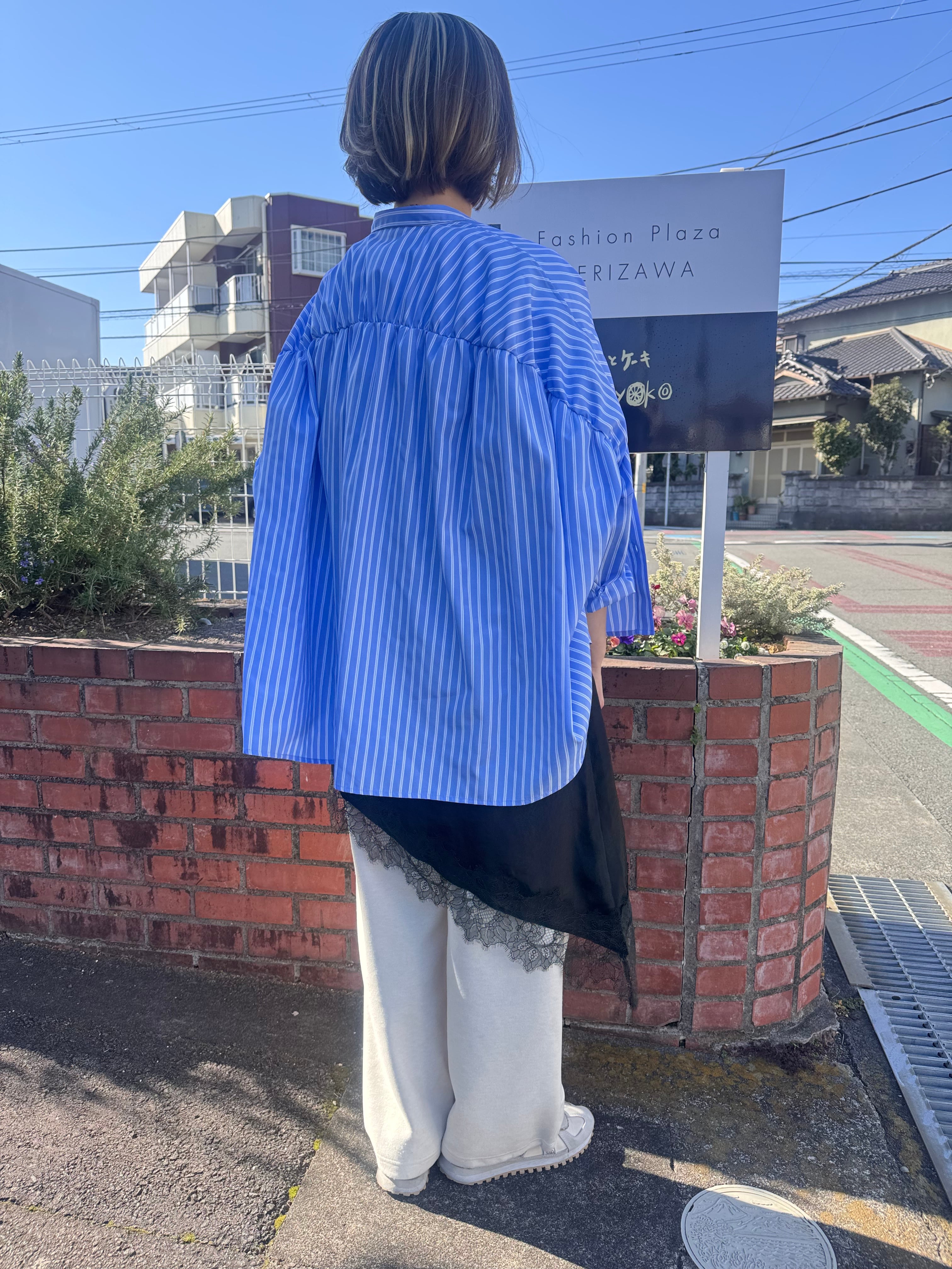 バックギャザーストライプシャツ