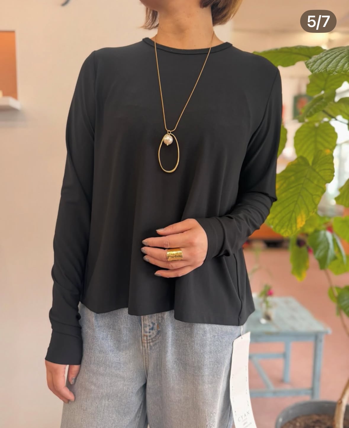 春・秋のインナーはコレ1枚あれば、どんなトップスとのレイヤードに使える便利なアイテム。