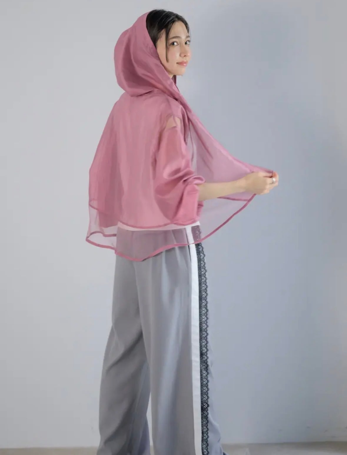 透け感のある素材と異素材の切り替えが