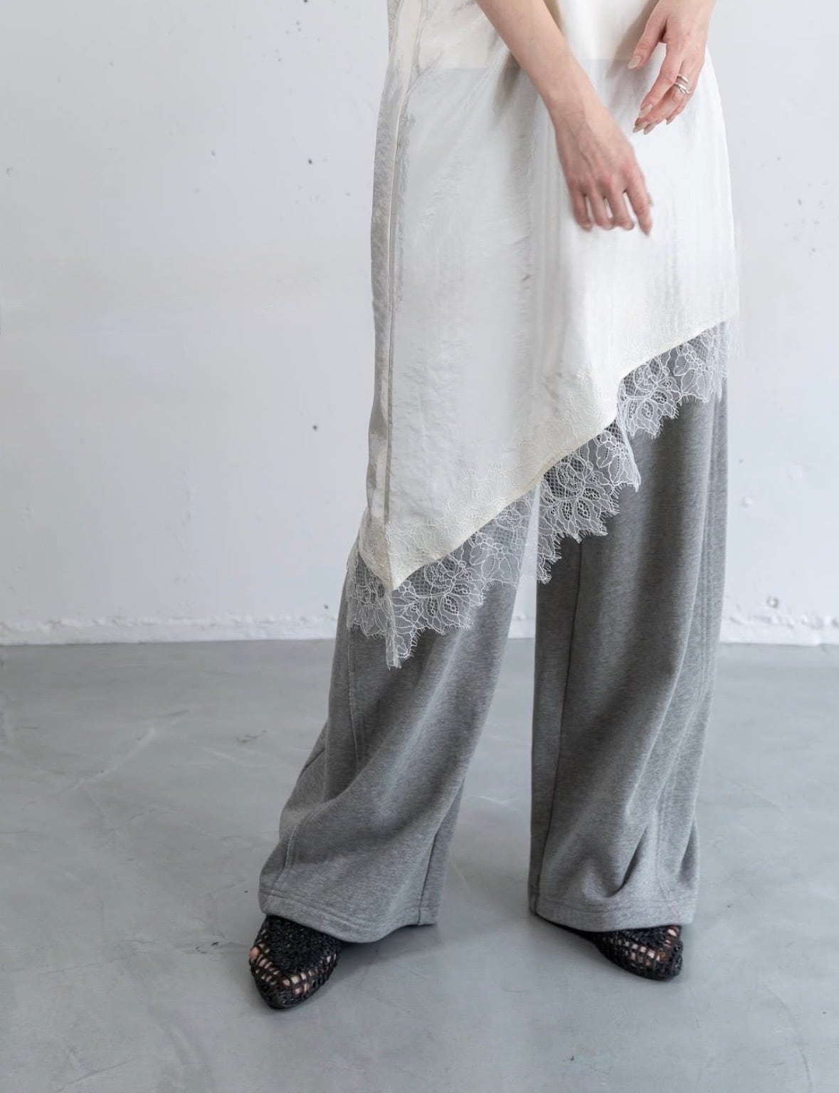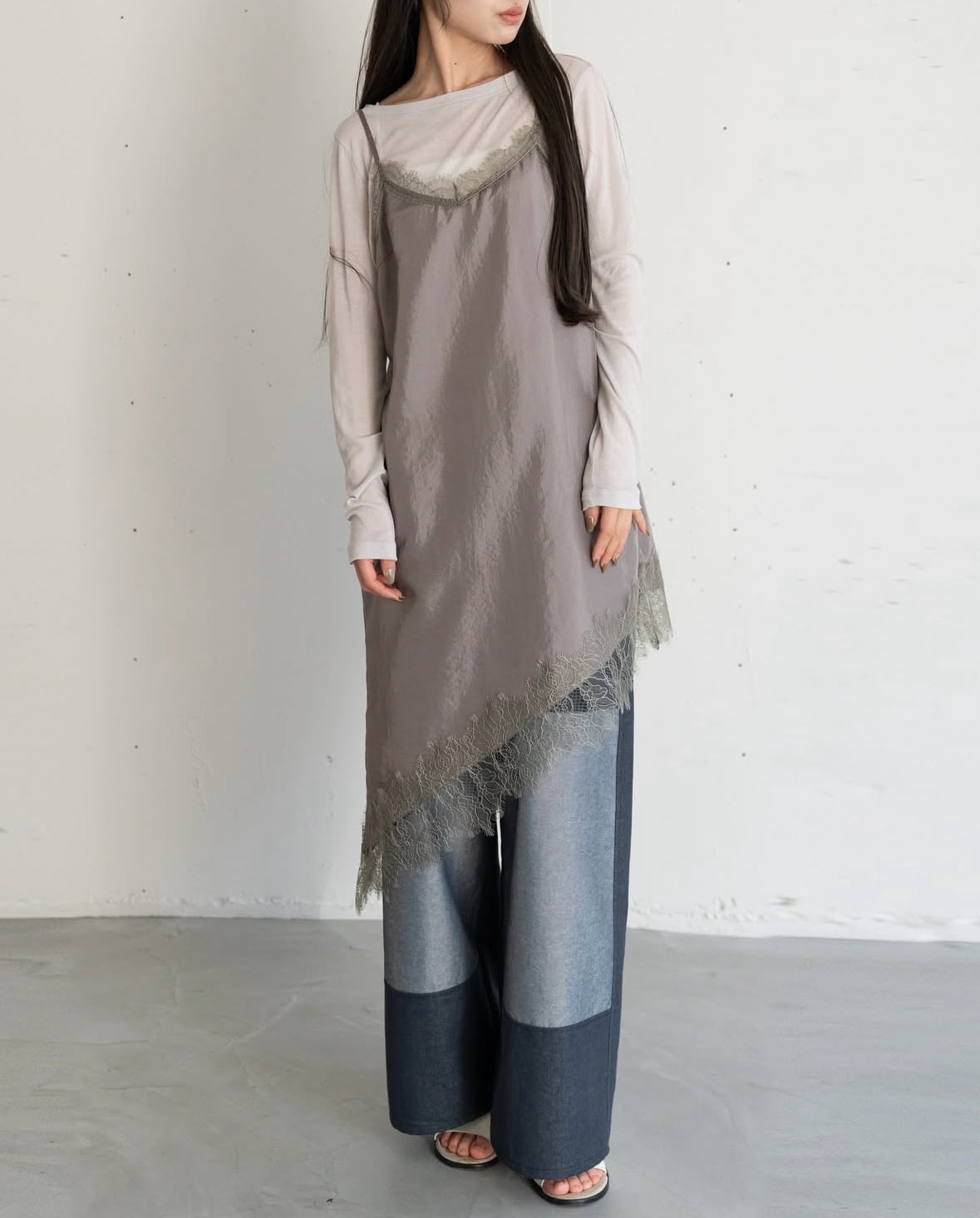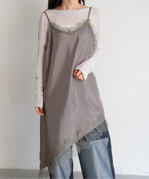 アシメ丈のキャミソールは繊細なレースを使用したランジェリーなデザイン。