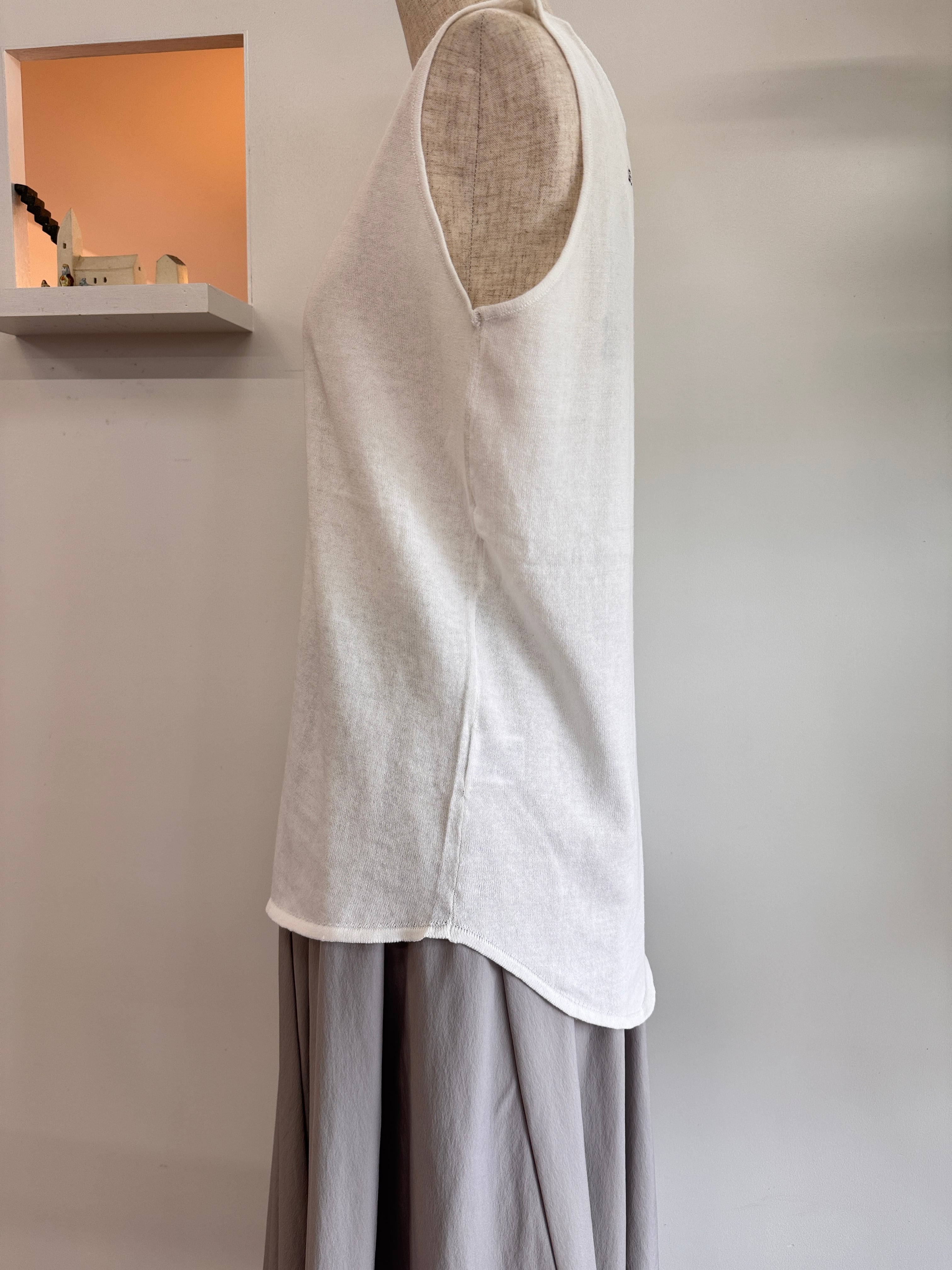 強燃糸ならではのシャリ感と清涼感が特徴のニットタンク。