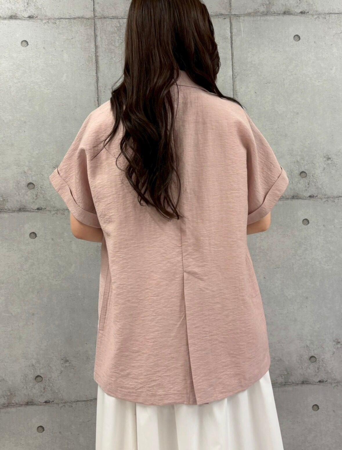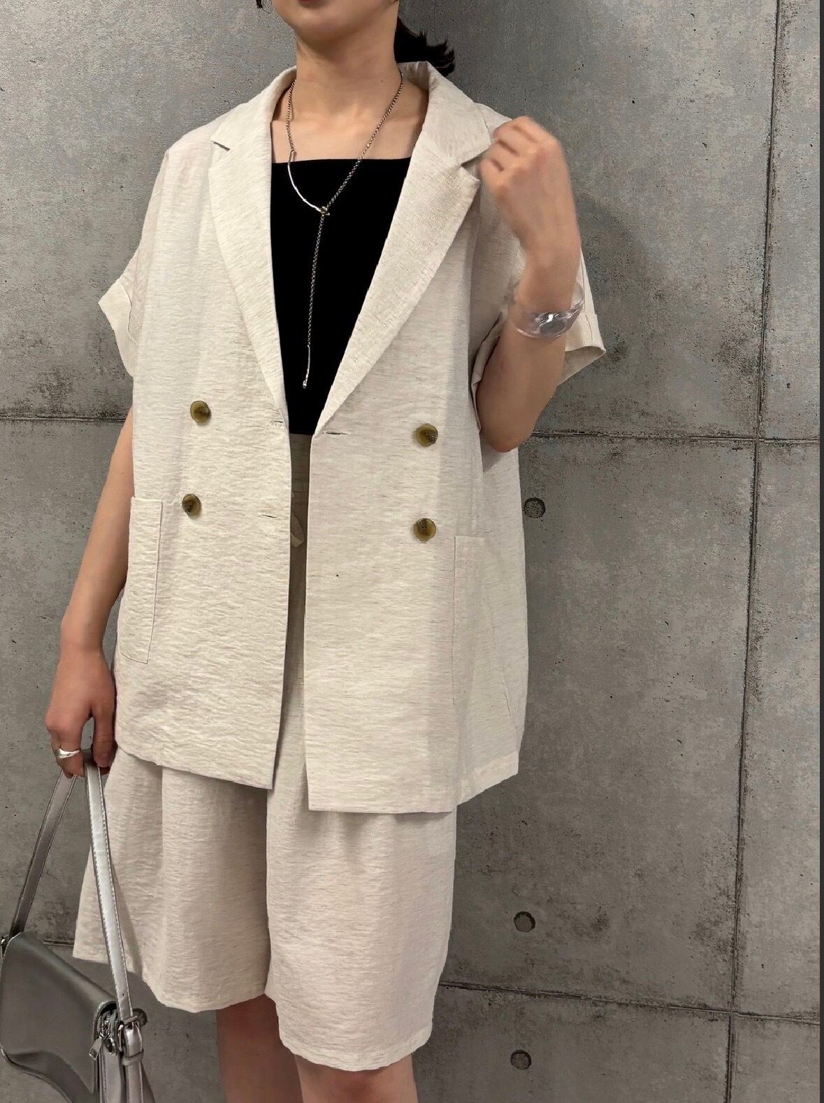 リネン混の軽い着心地が魅力で、凹凸感のある生地表面が涼し気な印象を演出してくれます。