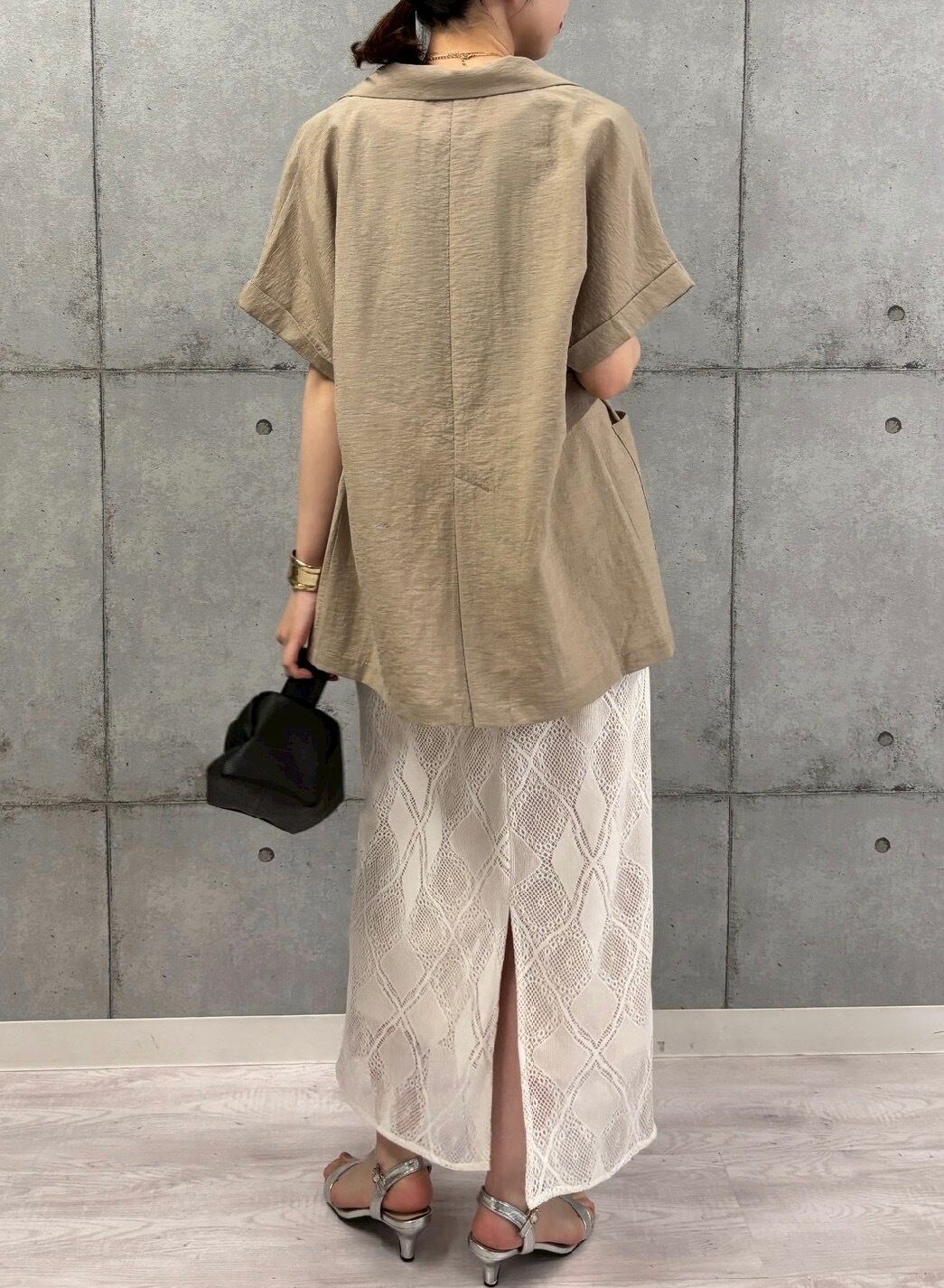 シルエットはお尻まで隠れるボックスシルエットなので、キレイめからカジュアルまで幅広いスタイリングが可能。