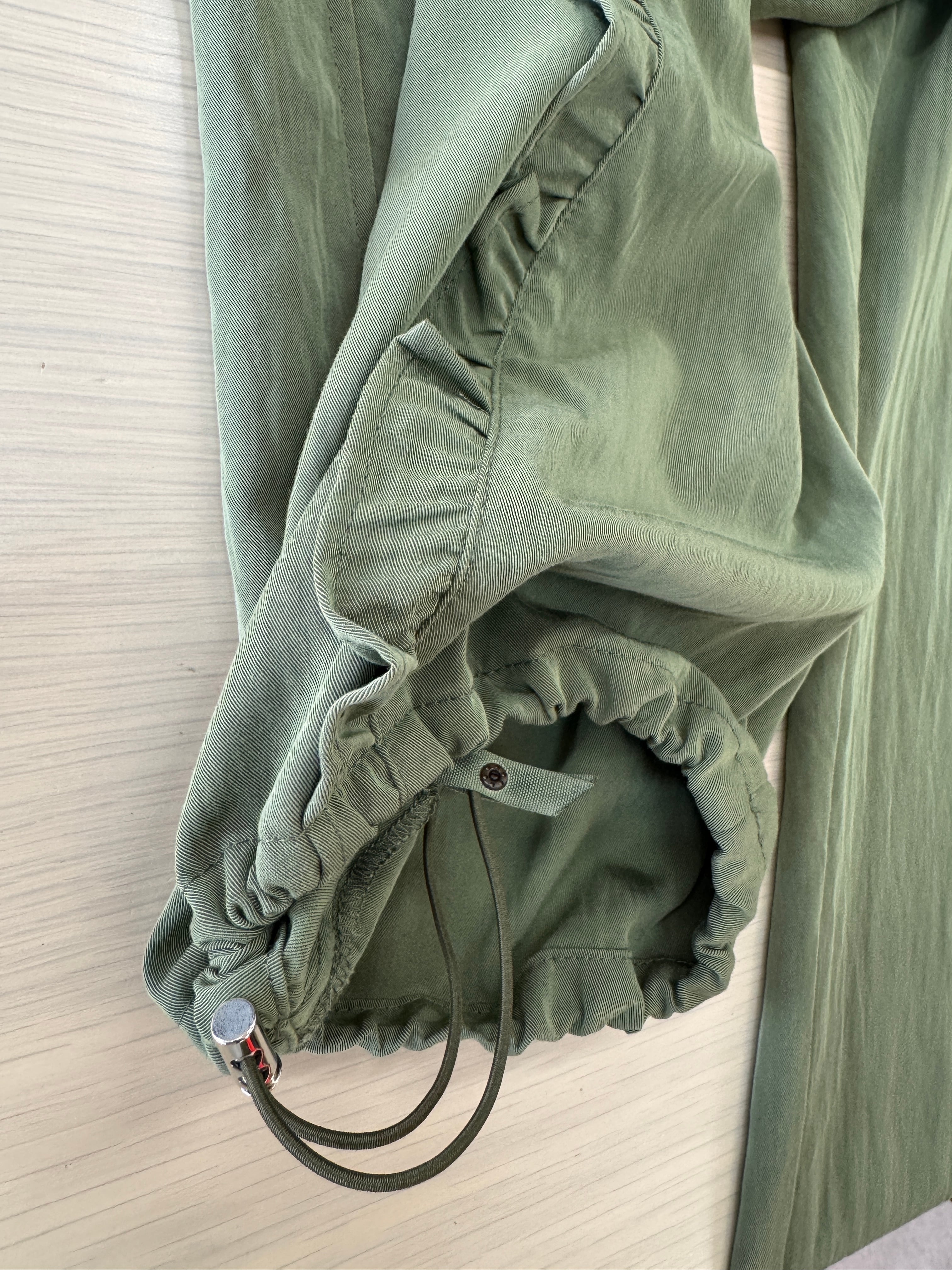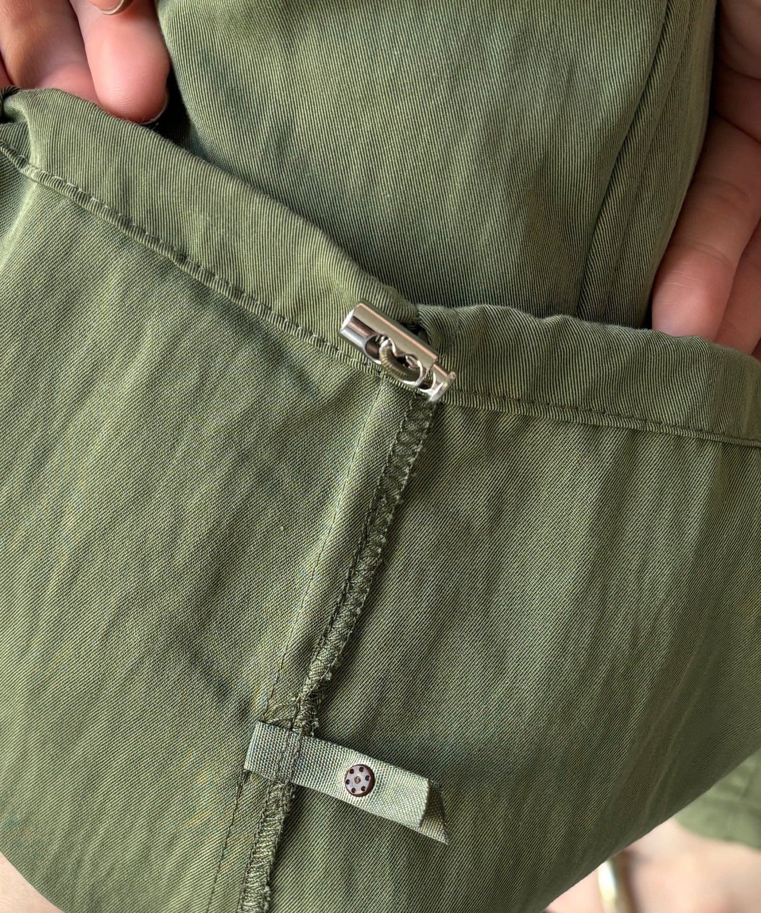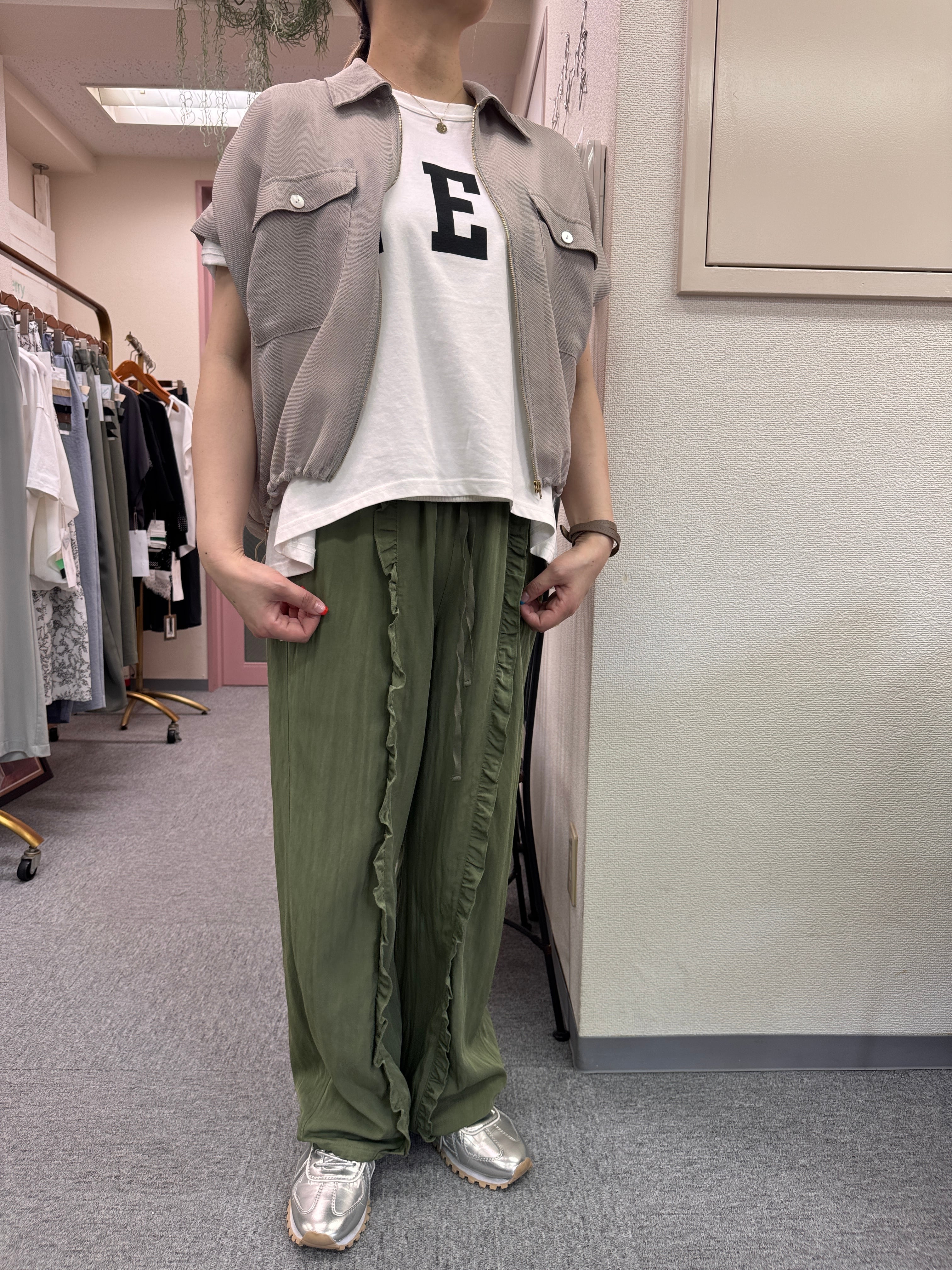 程よいワイドシルエットで体のラインを拾わず、ウエストはゴム仕様で、楽にデイリーに活躍してくれます。
